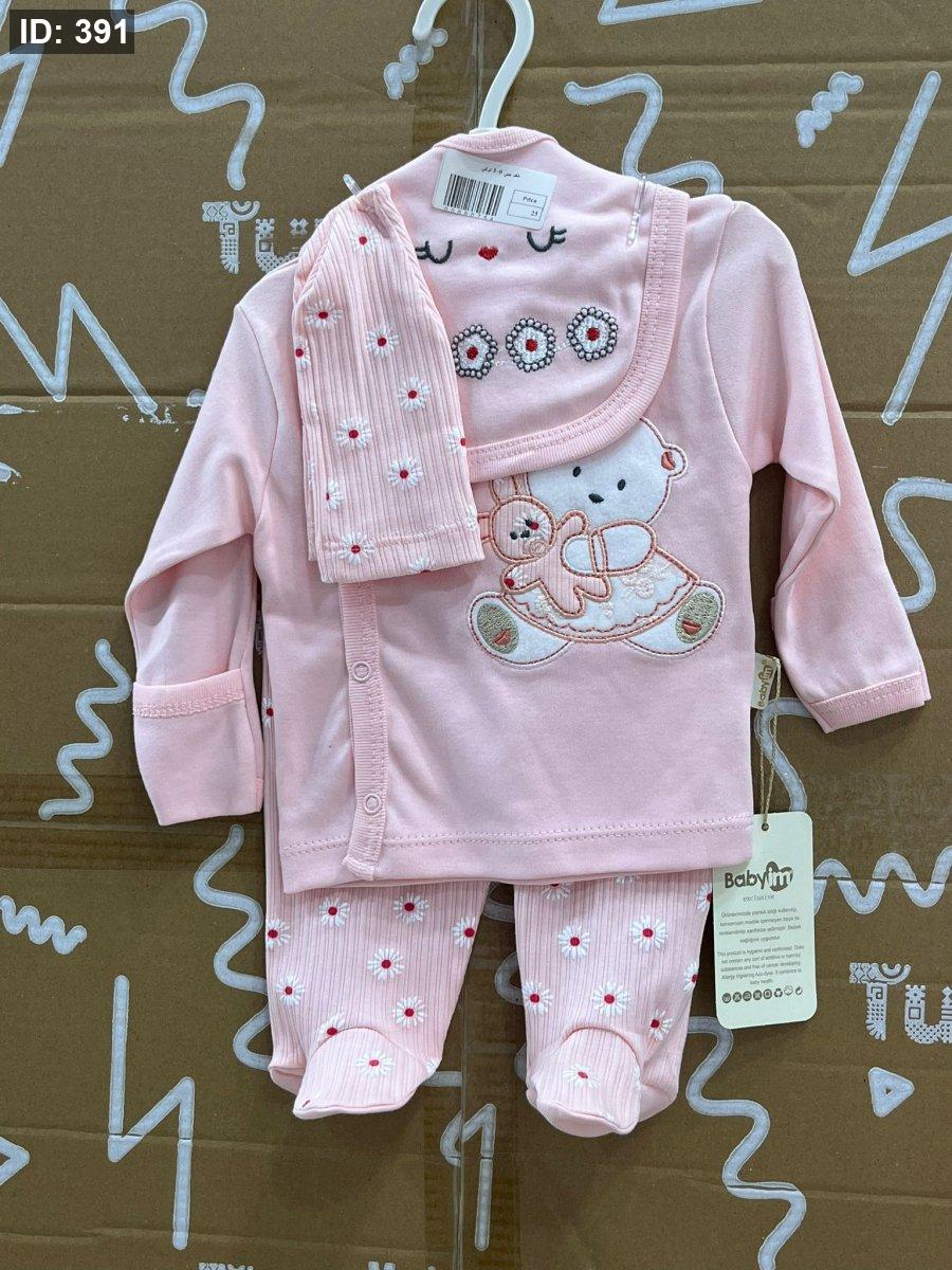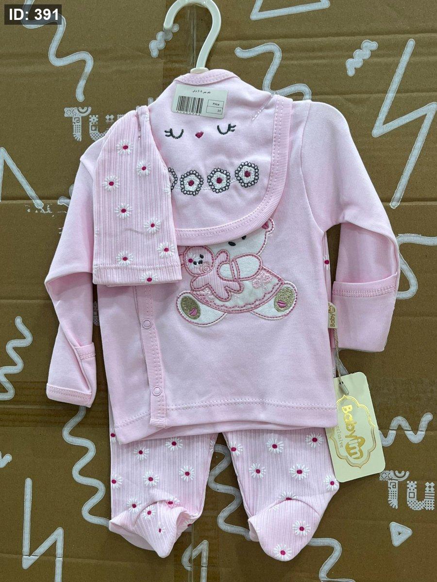 طقم دب مع ارنب بيبي مولود جديد 5 قطع - العمر 0-3