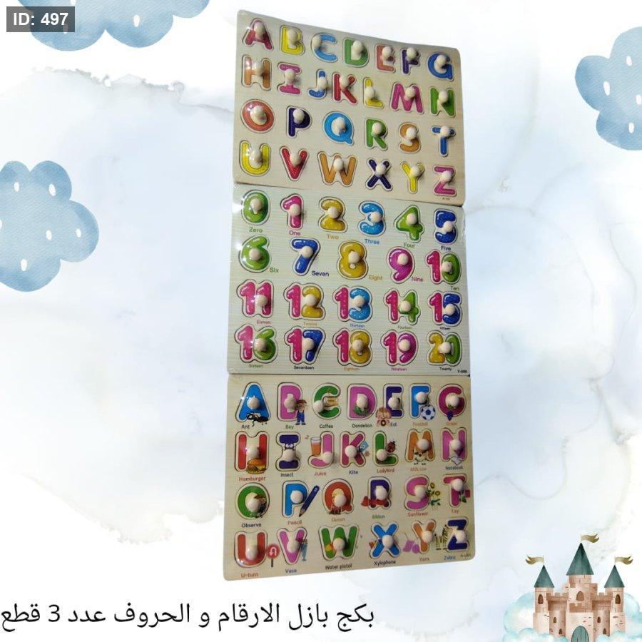 بكج الارقام و الحروف 3 قطع - خشب